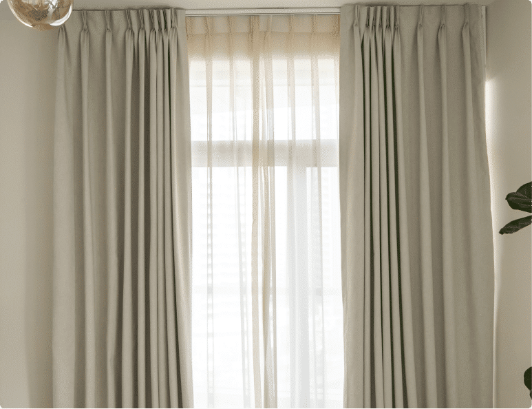 Layered sheer and blackout, allowing to take total light control.